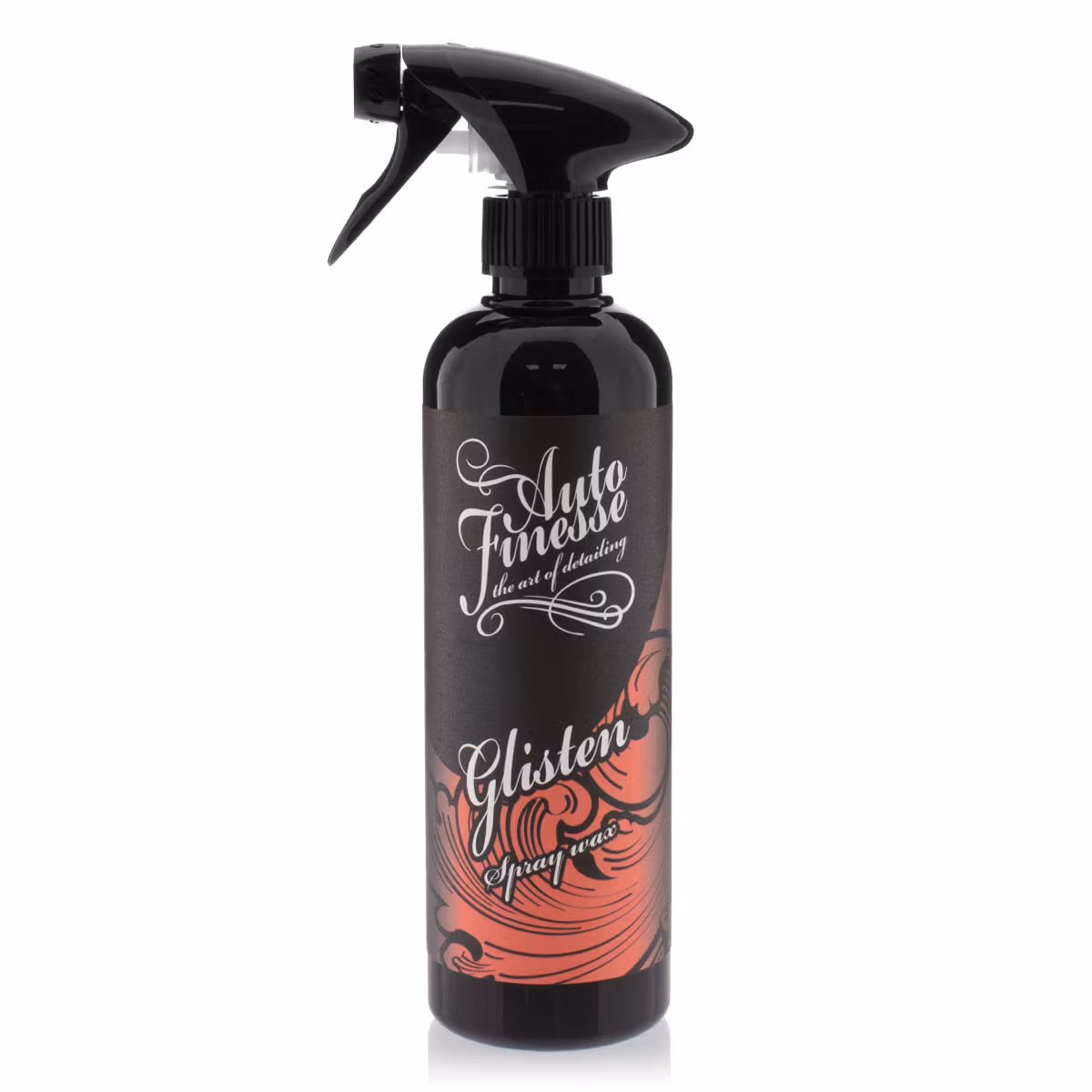 Glisten Spray Wax fra Auto Finesse er en premium og avansert sprayvoks. Dette er en løsemiddelbasert voks som fungerer som et siste steg, eller LSP (last stage product). Det vil si at dette er en fullverdig voks, som gir en komplett beskyttelse i inntil 4 uker. Dette er altså ikke den mest holdbare måten å beskytte bilen, men det er en av de enkleste. I tillegg er Glisten Spray Wax en drøm å jobbe med, da den er enkel i bruk og lukter friskt og godt. Glisten Spray Wax er også perfekt til å booste eksisterende voks, og er trygg å legge på andre eksisterende voks og forseglinger, og den er perfekt som en show-voks. Den er også idéell å bruke for å legge et vokslag på plasser som ofte er vanskelig tilgjengelige.