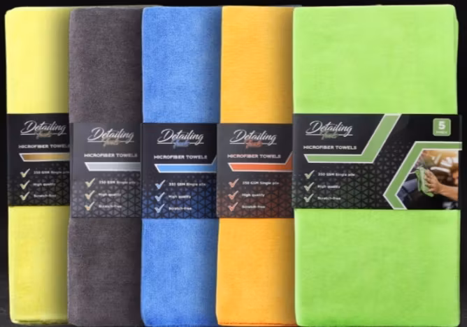 Detailing Tools™: 350 g/m² 40 x 40 cm Single Pile Towel blå (5pk) – mest kjent som den perfekte coating-kluten. Den egner seg meget godt til coating, men kan også benyttes til buffing av polish, tørk av coating, eller last finish. Rett og slett en veldig allsidig klut, som er veldig rimelig priset.