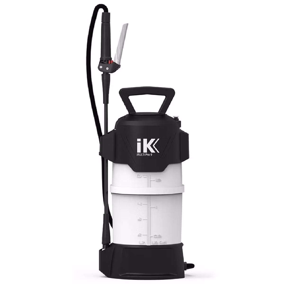 K MULTI Pro 9 lavtrykkskanne er kjent for sin maksimale ytelse når det gjelder ergonomi, brukervennlighet og sikkerhet. Den tilbyr en profesjonell sprayløsning for å oppnå optimale resultater i et bredt spekter av sektorer som bygg og anlegg, rengjøring og desinfeksjon, virus, skadedyr- og epidemikontroll, bilindustri, industri og klimaanlegg (HVAC). IK MULTI Pro 9 er designet for maksimal styrke og allsidighet med de mest aggressive kjemikaliene. IK MULTI Pro 9 er spesielt motstandsdyktig mot desinfeksjonsmidler, pH nøytrale produkter og syrer. Se oversikt for kompatible kjemikalier.