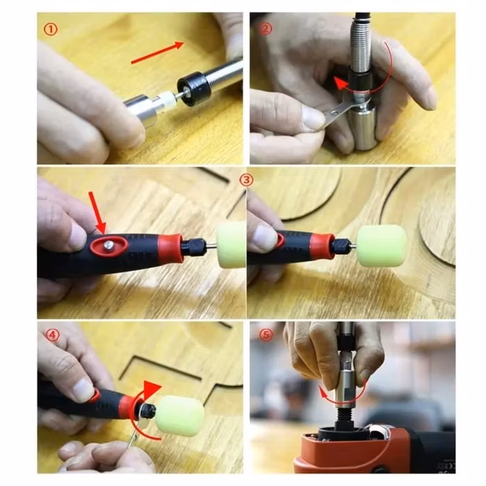 OBS! Du trenger en roterende poleringsmaskin som "motor" for å kjøre denne. Tåler hastighet opptil 20 000 RPM så de fleste roterende maskiner vil kunne brukes.