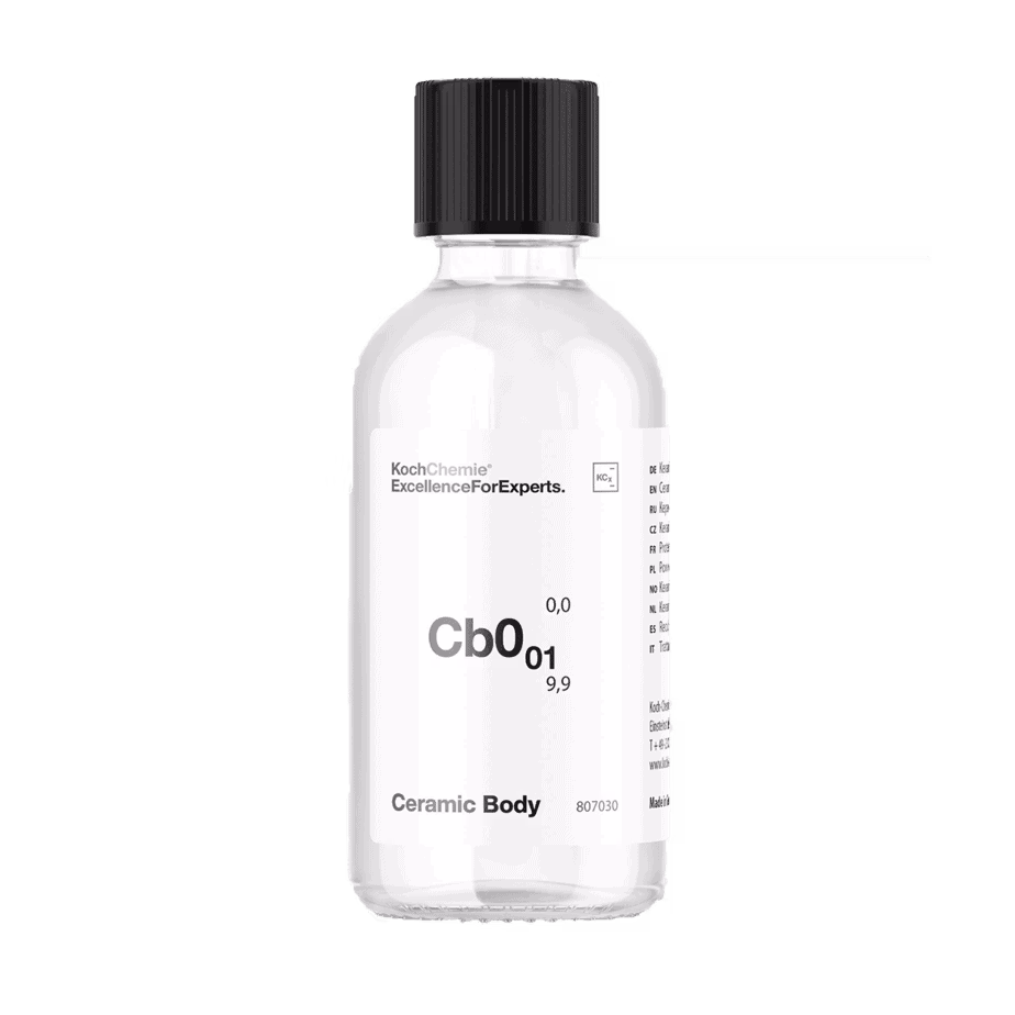 *Eksempel på bruk om sommeren i Norge: 20 °C / 68 °F fuktighet 43 % Tørketid på 6 minutter. Forbruk avhengig av kjøretøyets størrelse ca. 15-30 ml Før bruk, les farevarslene på beholderen eller ytterkartongen og ta nødvendige beskyttelsestiltak. Ceramic Body Cb0.01 reagerer med fuktighet. Dette kan føre til at krystaller dannes på kanten når flasken er åpen. Hvis disse krystallene kommer på påføringshåndkleet, kan overflaten som skal belegges bli ripet. Derfor må krystallene tørkes av med en klut før produktet dryppes på påføringshåndkleet. I tilfelle av doble belegg, bør en tørketid på ca. 30 minutter overholdes etter den første påføringen, avhengig av temperatur og fuktighet. Belegget er først værbestandig etter minst 24 timer. Ikke vask kjøretøyet før det har gått minst ni dager, da det keramiske belegget først da er fullstendig herdet. Ved lave utetemperaturer (under 15 °C) tar det lengre tid å herde. Likevel bør fugleskitt og insekter forsiktig fjernes så raskt som mulig i løpet av de første ni dagene. Påføring av Spray Sealant S0.02 eller Hand Wax W0.01 anbefales etter 24 timer for å beskytte det ennå ikke fullstendig herdede keramiske belegget. Rengjøringsmidler med pH-verdier under 3 eller over 12 bør unngås. En åpnet flaske kan oppbevares i maksimalt 6 måneder. Sjekk flasken for krystallisering før bruk. Håndvask anbefales for å beholde den høyglansede keramiske overflaten så lenge som mulig. Bruk Green Star (fortynning 1:10) for alkalisk rengjøring. Bruk Gentle Snow Foam for nøytrale vasker. For å fjerne mineralsk smuss, anbefales en grundig rengjøring med Reactivation Shampoo. Profesjonell etterbehandling opprettholder egenskapene til keramisk forsegling og minimerer vannmerker. Derfor anbefales det å bruke Hydro Foam Sealant S0.03 (fortynning 1:50 – 1:200) som en våtforsegling eller Spray Sealant S0.02 som en toppforsegling etter vask av kjøretøyet. Se produktinformasjonen for nøyaktig bearbeiding.