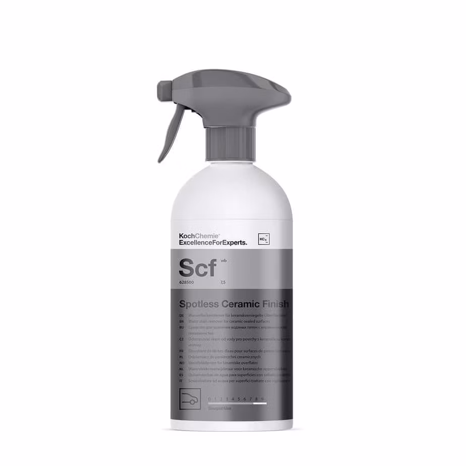 Spotless Ceramic Finish er en vannflekkfjerner for skånsom fjerning av vann- og kalkflekker på keramiskforseglede biler uten å påvirke forseglingen. Produktet fjerner lett ferske kalkflekker fra forseglingen. I tillegg får den behandlede overflaten en overbevisende fargedybde, en stripefri glans og sin opprinnelige glatthet.